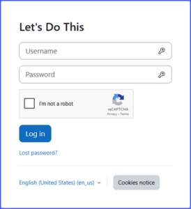 I added a Let’s Do This link to the site menu. This link opens my instance of Moodle 5 in a new browser tab. For obvious reasons, I have disabled guest access to the site.